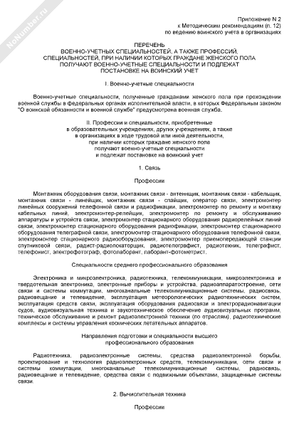 - 72Перечень военно-учетных специальностей, а также профессий, специальностей, при наличии которых граждане женского пола получают военно-учетные специальности и подлежат постановке на воинский учет