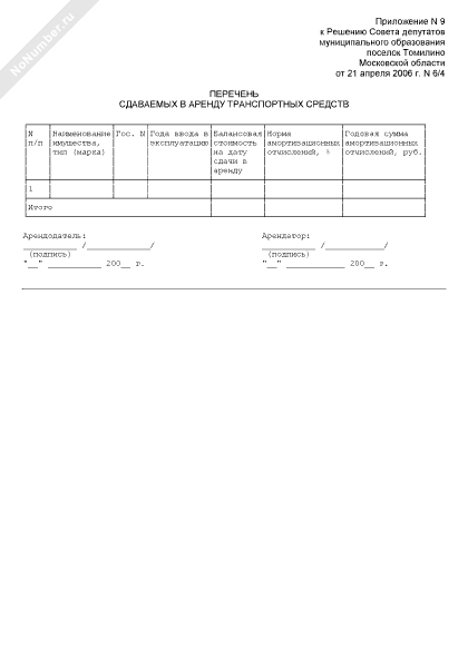 - 918Перечень сдаваемых в аренду транспортных средств, находящихся на балансе городского поселения Томилино Люберецкого района Московской области