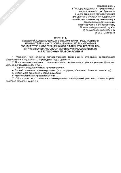 - 901Перечень сведений, содержащихся в уведомлении представителя нанимателя о фактах обращения в целях склонения государственного гражданского служащего Федеральной службы по финансовому мониторингу к совершению коррупционных правонарушений