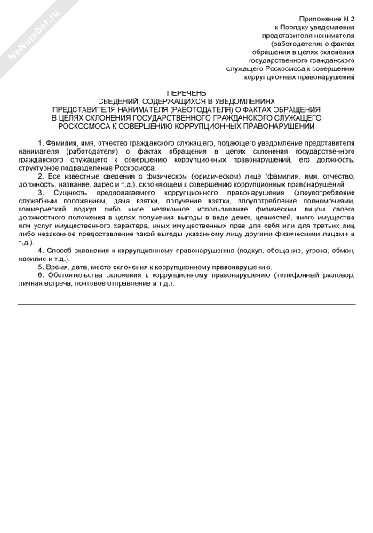 - 903Перечень сведений, содержащихся в уведомлениях представителя нанимателя (работодателя) о фактах обращения в целях склонения государственного гражданского служащего Роскосмоса к совершению коррупционных правонарушений