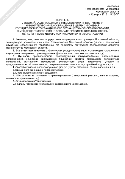 - 906Перечень сведений, содержащихся в уведомлениях представителя нанимателя о фактах обращения в целях склонения государственного гражданского служащего Московской области, замещающего должность в аппарате правительства Московской области, к совершению коррупционных правонарушений