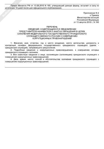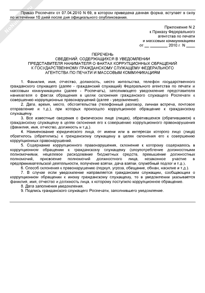 - 915Перечень сведений, содержащихся в уведомлении представителя нанимателя о фактах обращения в целях склонения федерального государственного гражданского служащего Минюста России к совершению коррупционных правонарушений