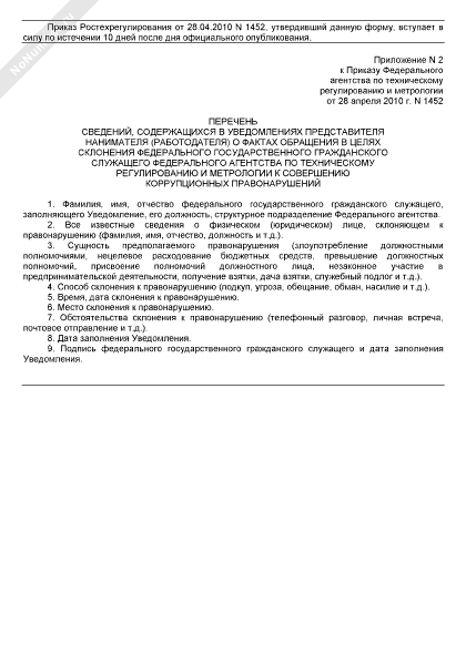 - 910Перечень сведений, содержащихся в уведомлениях представителя нанимателя (работодателя) о фактах обращения в целях склонения федерального государственного гражданского служащего Федерального агентства по техническому регулированию и метрологии к совершению коррупционных правонарушений
