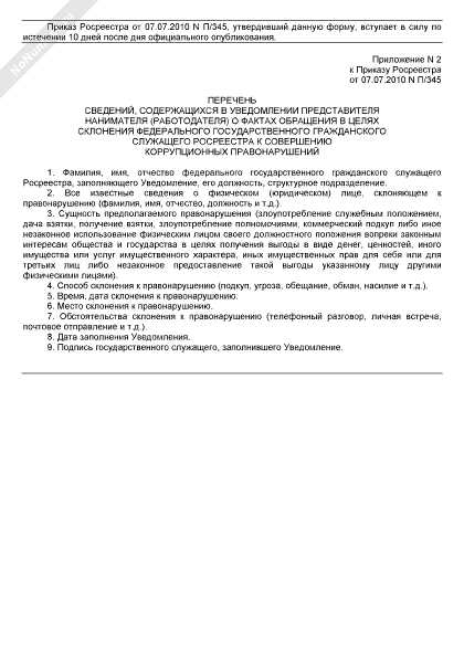 - 914Перечень сведений, содержащихся в уведомлении представителя нанимателя (работодателя) о фактах обращения в целях склонения федерального государственного гражданского служащего Росреестра к совершению коррупционных правонарушений