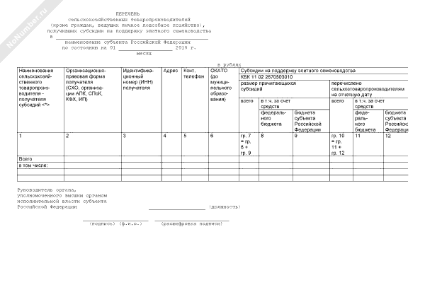 - 923Перечень сельскохозяйственных товаропроизводителей (кроме граждан, ведущих личное подсобное хозяйство), получивших субсидии на поддержку элитного семеноводства (приложение к отчету о расходах бюджета субъекта Российской Федерации (местного бюджета), источником финансового обеспечения которых является субсидия из федерального бюджета)