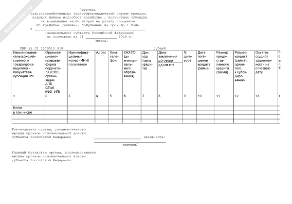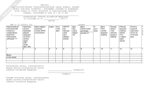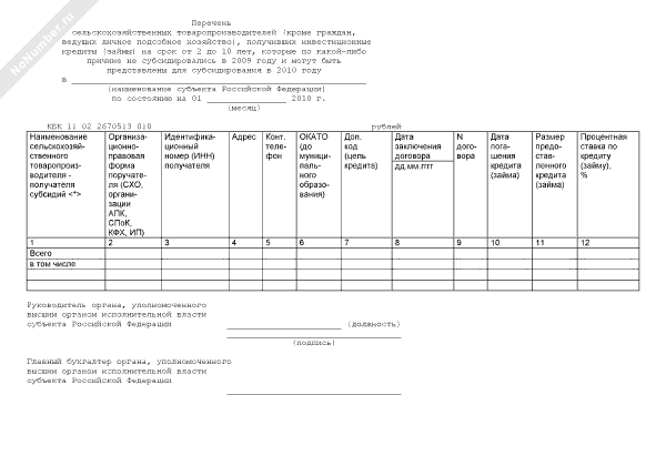 - 927Перечень сельскохозяйственных товаропроизводителей (кроме граждан, ведущих личное подсобное хозяйство), получивших инвестиционные кредиты (займы) на срок от 2 до 10 лет, которые по какой-либо причине не субсидировались в 2009 году и могут быть представлены для субсидирования в 2010 году (приложение к отчету о расходах бюджета субъекта РФ (местного бюджета), источником финансового обеспечения которых является субсидия из федерального бюджета)