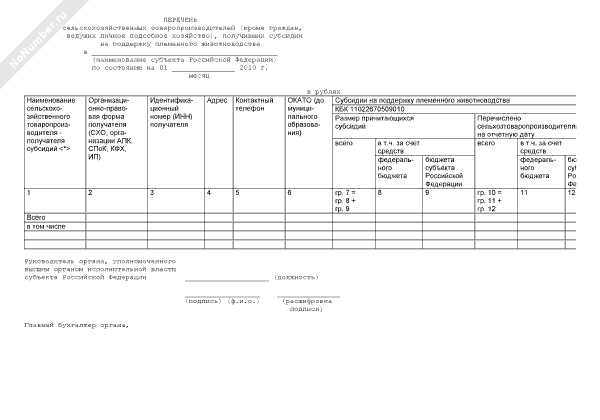 - 922Перечень сельскохозяйственных товаропроизводителей (кроме граждан, ведущих личное подсобное хозяйство), получивших субсидии на поддержку племенного животноводства (приложение к отчету о расходах бюджета субъекта Российской Федерации (местного бюджета), источником финансового обеспечения которых является субсидия из федерального бюджета)