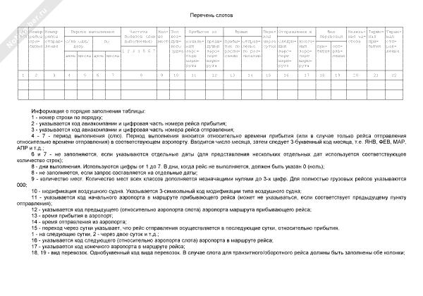 - 933Перечень слотов (приложение к заявке на оказание услуг субъектов естественных монополий в аэропортах)