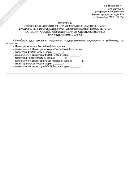 - 934Перечень служебных удостоверений и пропусков, дающих право входа на территории административных зданий Министерства юстиции Российской Федерации и подведомственных ему федеральных служб