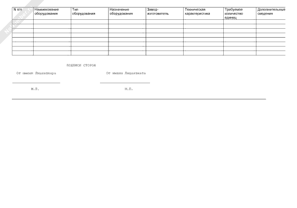 - 938Перечень специального оборудования (приложение к договору между гражданами и/или юридическими лицами о продаже/покупке неисключительной/исключительной лицензии на использование изобретения)