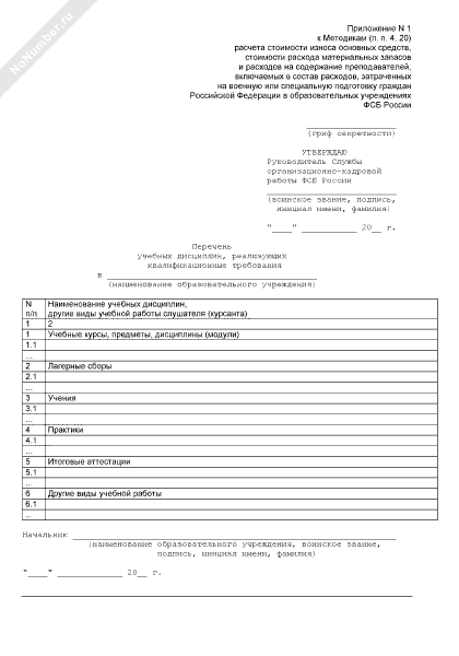 - 1020Перечень учебных дисциплин, реализующих квалификационные требования в образовательном учреждении ФСБ России