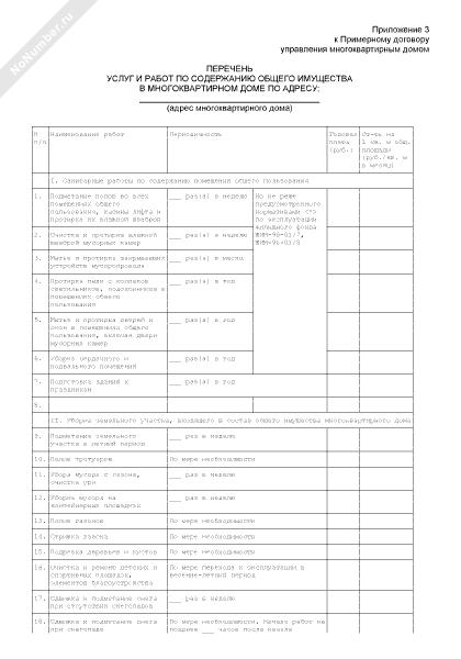 - 1003Перечень услуг и работ по содержанию общего имущества в многоквартирном доме (приложение к примерному договору управления многоквартирным домом)