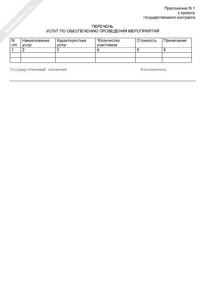 - 1001Перечень услуг по обеспечению проведения мероприятий (приложение к проекту государственного контракта на оказание услуг по обеспечению проведения совещаний, конференций и торжественных мероприятий на территории Московской области)