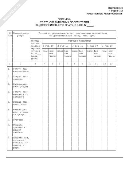 - 1005Перечень услуг, оказываемых посетителям за дополнительную плату, в бане. (приложение к форме № 3.2 «Качественные характеристики»)