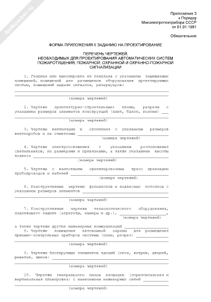 - 1069Перечень чертежей, необходимых для проектирования автоматических систем пожаротушения, пожарной, охранной и охранно-пожарной сигнализации (приложение к заданию на проектирование)