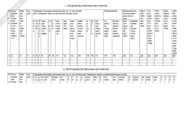 - 1080Перечень-дислокация сети магазинов (продовольственных, непродовольственных, предприятий общественного питания) (форма № 1)