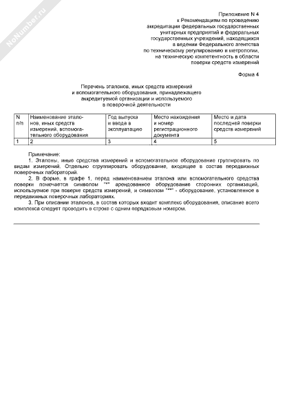 - 1075Перечень эталонов, иных средств измерений и вспомогательного оборудования, принадлежащего аккредитуемой организации и используемого в поверочной деятельности (форма № 4)