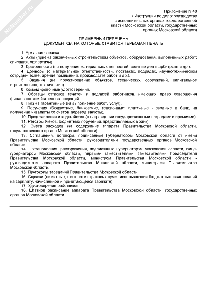 - 1130Примерный перечень документов, на которые ставится гербовая печать в исполнительных органах государственной власти Московской области, государственных органах Московской области