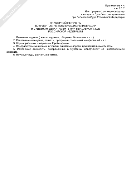 - 1133Примерный перечень документов, не подлежащих регистрации в Судебном департаменте при верховном суде Российской Федерации