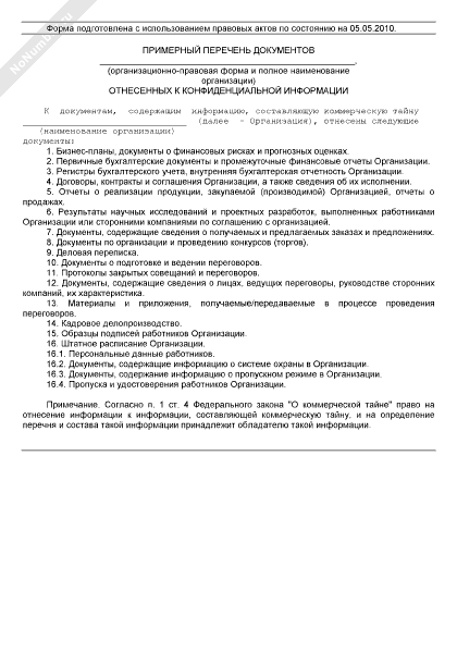 - 1132Примерный перечень документов организации, отнесенных к конфиденциальной информации