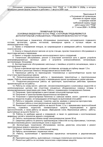- 1122Примерный перечень основных видов работ в ОАО «РЖД», к которым предъявляются дополнительные (повышенные) требования безопасности труда