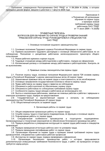 - 1121Примерный перечень вопросов для обучения по охране труда и проверки знаний требований охраны труда руководителей и специалистов ОАО «РЖД»