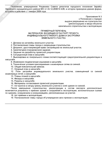 - 1144Примерный перечень материалов, входящих в паспорт проекта индивидуального жилого дома и застройки земельного участка, расположенного на территории городского поселения Зарайск Зарайского района Московской области