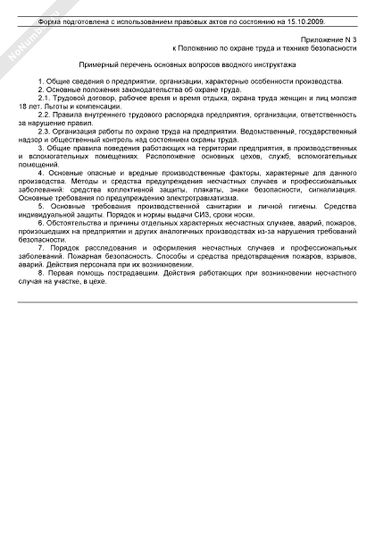 - 1147Примерный перечень основных вопросов вводного инструктажа (приложение к положению по охране труда и технике безопасности)