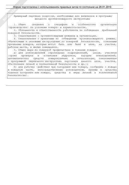 - 1145Примерный перечень вопросов, необходимых для включения в программу вводного противопожарного инструктажа