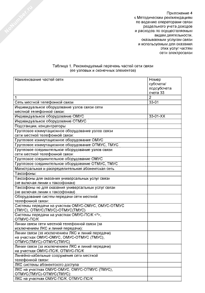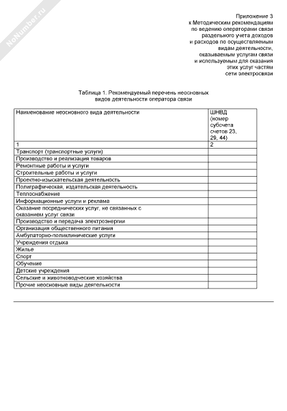 - 1156Рекомендуемый перечень неосновных видов деятельности оператора связи (таблица 1)