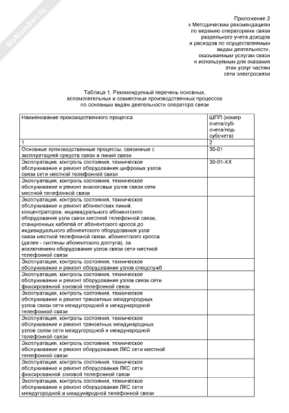 - 1155Рекомендуемый перечень основных, вспомогательных и совместных производственных процессов по основным видам деятельности оператора связи (таблица 1)