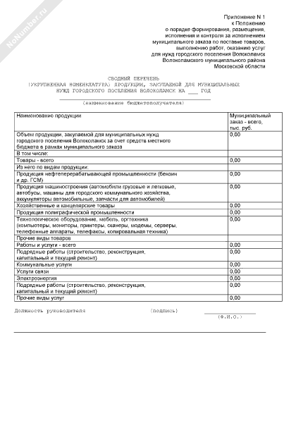 - 1158Сводный перечень (укрупненная номенклатура) продукции, закупаемой для муниципальных нужд городского поселения Волоколамск Московской области