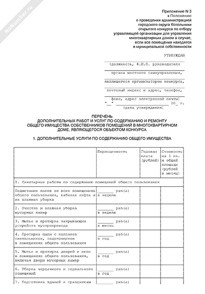 - 1186Перечень дополнительных работ и услуг по содержанию и ремонту общего имущества собственников помещений в многоквартирном доме, являющегося объектом конкурса по отбору управляющей организации в городском округе Котельники Московской области