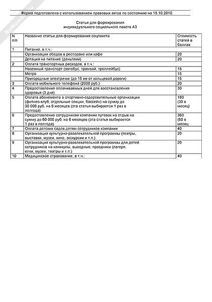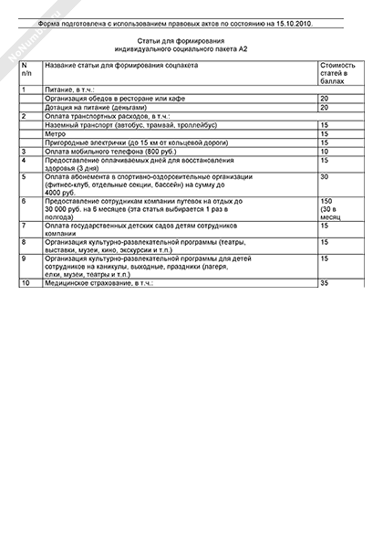 - 1199Перечень статей для формирования индивидуального социального пакета для специалистов организации