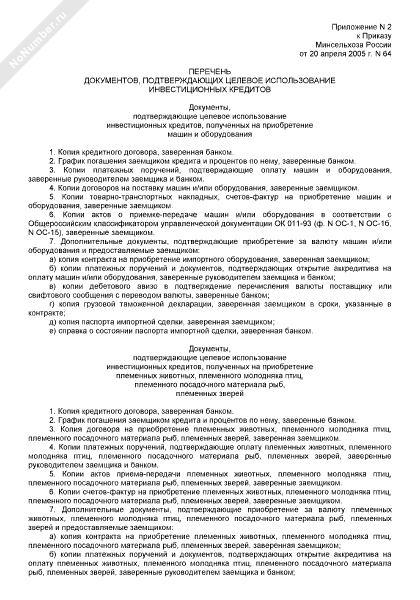 - Источник– Приказ Минсельхоза РФ от 20.04.2005 № 64