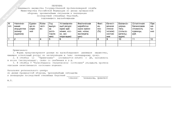 Перечень движимого имущества Государственной противопожарной службы Министерства Российской Федерации по делам гражданской обороны, чрезвычайным ситуациям и ликвидации последствий стихийных бедствий, подлежащего высвобождению (форма предусматривает данные на высвобождаемое движимое имущество, имеющее остаточный ресурс по эксплуатации и (или) календарному сроку)