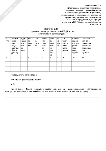 Перечень движимого имущества системы МВД России, подлежащего высвобождению (рекомендуемый образец заполнения)