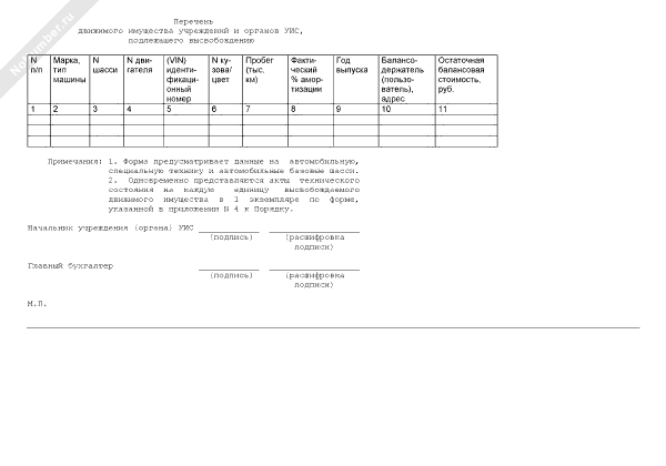 Перечень движимого имущества учреждений и органов уголовно-исполнительной системы, подлежащего высвобождению (автомобильной, специальной техники и автомобильных базовых шасси)
