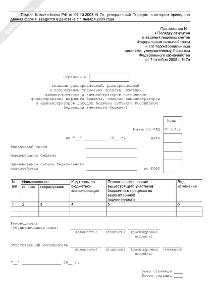 - Источник– Приказ Казначейства РФ от 07.10.2008 № 7 (редакция от 14.07.2010 № 4н)