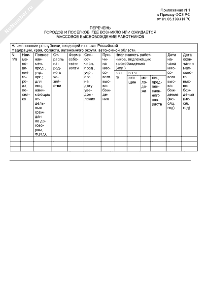 - Источник– Приказ ФСЗ РФ от 01.06.1993 № 70 (редакция от 30.12.1993 № 161)