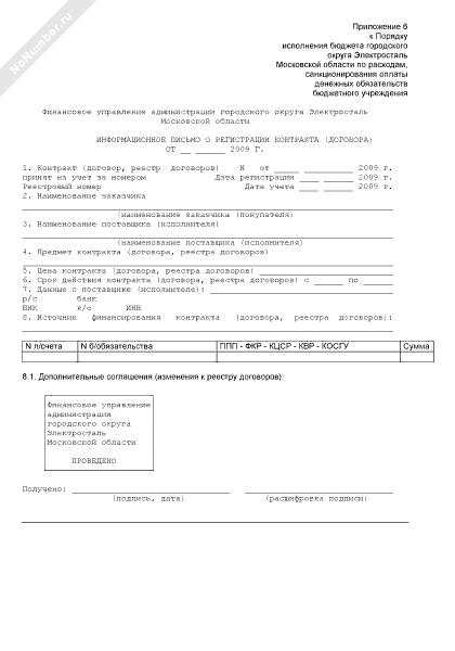 - 7Информационное письмо получателю бюджетных средств городского округа Электросталь Московской области о регистрации контракта (договора)