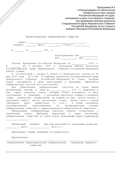 - 6Информационное письмо территориальной избирательной комиссии для судовладельца, содержащее сведения о дате проведения выборов депутатов Государственной Думы Федерального Собрания Российской Федерации пятого созыва для организации избирательных участков на судах