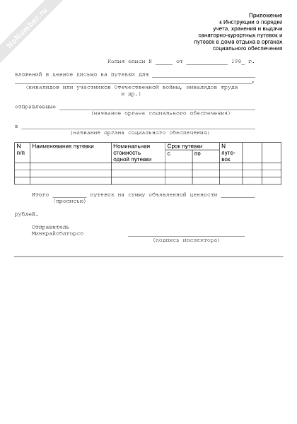 - 10Копия описи вложений в ценное письмо на путевки для инвалидов или участников Отечественной войны, инвалидов труда и др.