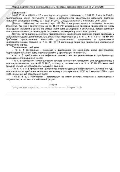 - 13Письмо (извлечение) на требование налогового органа о представлении копий документов