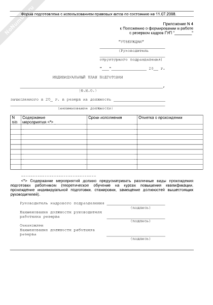 - 36Индивидуальный план подготовки (приложение к положению о формировании и работе с резервом кадров государственного унитарного предприятия)
