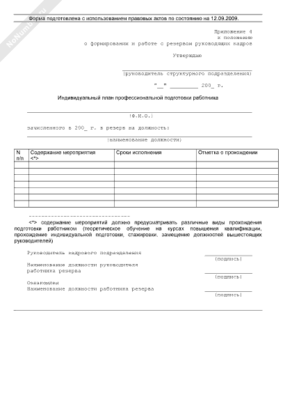 - 40Индивидуальный план профессиональной подготовки работника (приложение к положению о формировании и работе с резервом руководящих кадров)