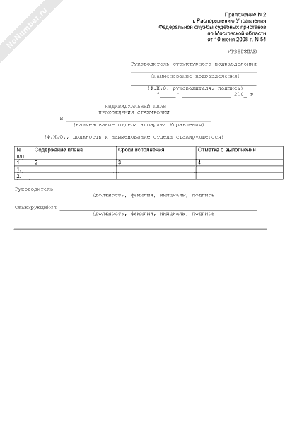 - 32Индивидуальный план прохождения стажировки в отделе аппарата Управления Федеральной службы судебных приставов по Московской области