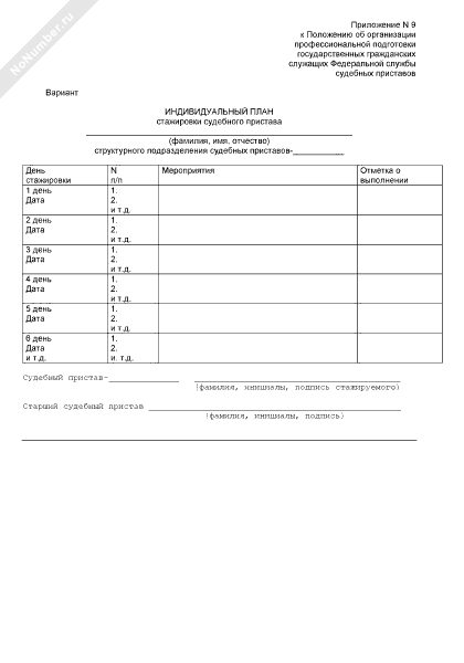 - 31Индивидуальный план стажировки судебного пристава структурного подразделения Федеральной службы судебных приставов