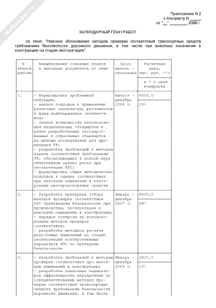 - 70Календарный план работ (приложение к государственному контракту на выполнение НИОКР (поставку готовой научно-технической продукции по теме: «Исследование и научное обоснование необходимости оборудования транспортных средств устройствами ограничения скорости грузовых автомобилей и автобусов»))