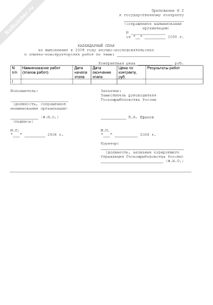 - 82Календарный план (приложение к государственному контракту на выполнение в 2008 году научно-исследовательских и опытно-конструкторских работ по направлению «Проведение исследований в области экономики и управления рыбохозяйственным комплексом» для нужд Госкомрыболовства России)